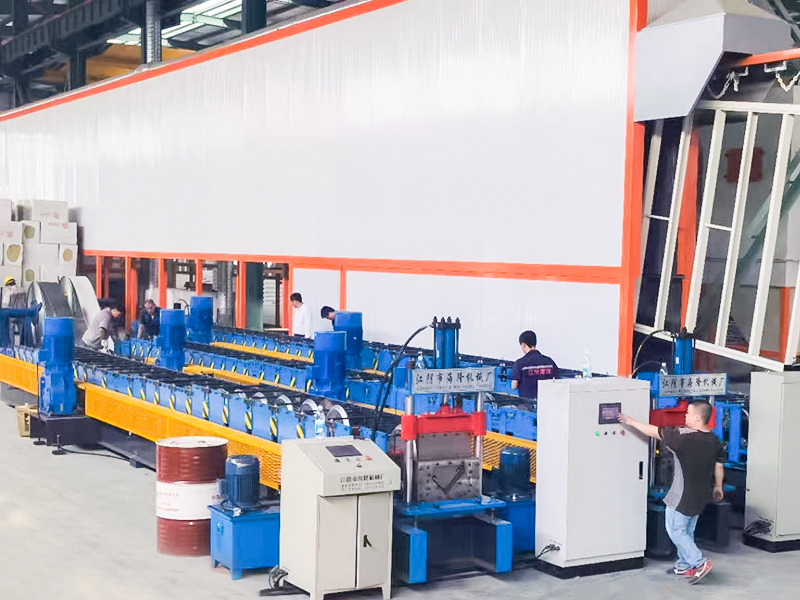 Cold roll forming main machine (core): Contains multiple groups (usually dozens of groups) of forming roller frames. The rollers arranged up and down or horizontally on each roller frame gradually bend the straight steel strip into the final cross-section.